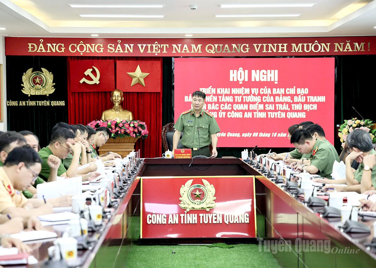 Chiều 9-10, Công an tỉnh Tuyên Quang tổ chức Hội nghị triển khai nhiệm vụ của Ban Chỉ đạo bảo vệ nền tảng tư tưởng của Đảng (Ban Chỉ đạo 35) trong lực lượng Công an tỉnh. Đại tá Ma Quang Trung, Phó Giám đốc Công an tỉnh, Phó trưởng Ban Chỉ đạo 35 trong lực lượng Công an tỉnh chủ trì hội nghị.