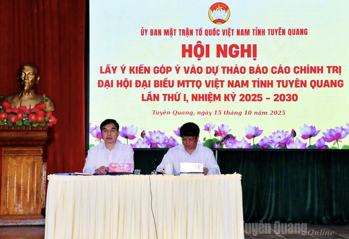 Ngày 15-10, Ban Thường trực Ủy ban MTTQ Việt Nam tỉnh tổ chức Hội nghị lấy ý kiến góp ý vào Dự thảo Báo cáo chính trị trình tại Đại hội đại biểu MTTQ Việt Nam tỉnh Tuyên Quang lần thứ I, nhiệm kỳ 2025-2030.